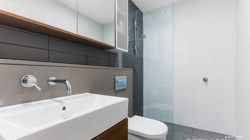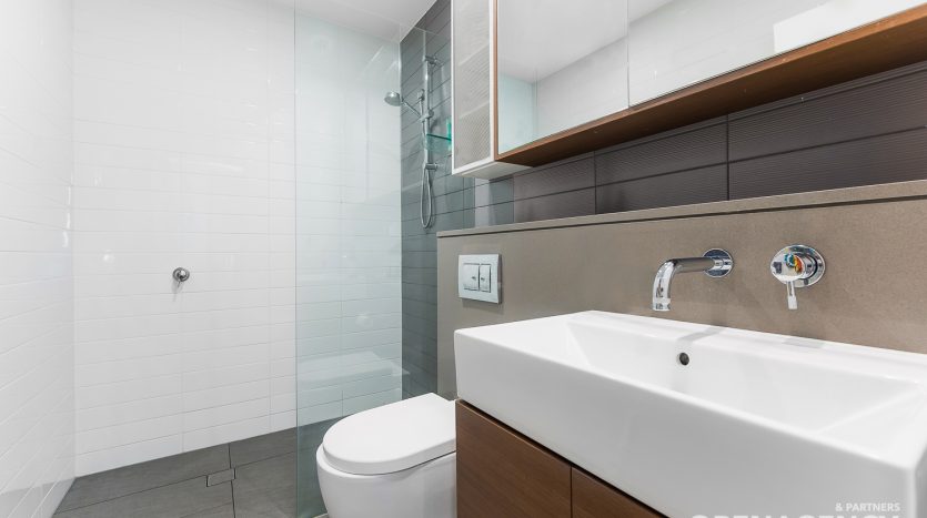 – Modern bathrooms with floor-to-ceiling tiles, frameless shower screens and cabinets