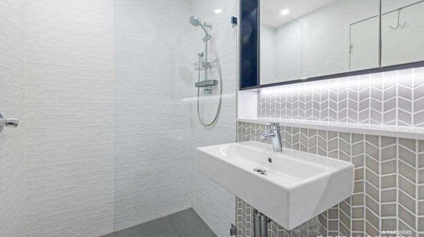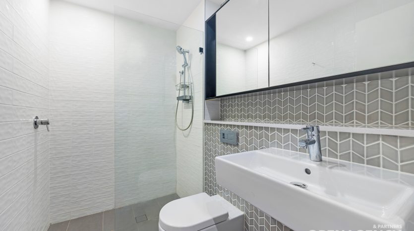 – Modern bathrooms with floor-to-ceiling tiles, frameless shower screens and cabinets